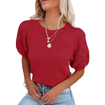 Womens Plus Size Crochet Bolero Shrug Sweaters Cropped Lightweight Cardigan Long Sleeve Mesh Knit Crop Tops Red_3XL