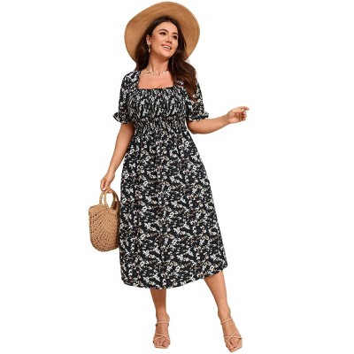 Womens Plus Size V Neck Summer Dress Layered Floral Print Long Maxi A Line Boho Dress