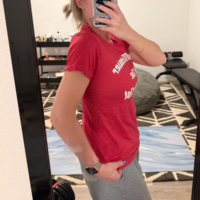 [This review was collected as part of a promotion.] This shirt is my spirit animal in word form. I am a true size small, and this fits perfectly (25” waist, 32” bust). Very comfy for lounging, and it’s 100 percent cotton which is amazing. The red color is very festive and fun. I probably will just wear it at home during the holidays, but it got lots of laughs this year!