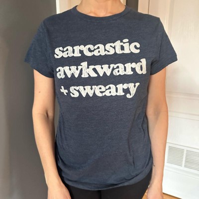 Womens Sarcastic Awkward Sweary T Shirt Funny Personality Introvert Graphic Tee - Crazy Dog Women's T Shirt With Sarcastic Sayings Navy L