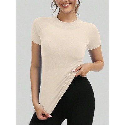 Sol Living Women's Seamless Gym Athletic Shirts Long Sleeve Workout Top