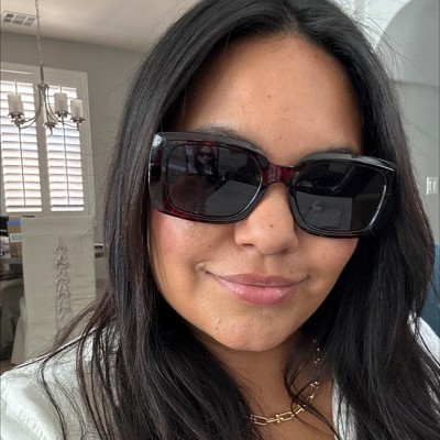 Add a sleek, on-trend style to your accessories collection with the Shiny Plastic Square Sunglasses from Universal Thread™. These square sunglasses feature a tortoiseshell-print brown frame with gray lenses for an eye-catching look. The lenses have a UV protection feature to help keep your eyes shielded from harmful sun rays. Made of 100% recycled plastic frame for a lightweight feel, these tortoiseshell-print sunglasses fit most faces.