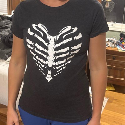 Womens Skeleton Ribcage Heart Funny T Shirt Scary Novelty Tee for Ladies - Crazy Dog Women's T Shirt For Halloween Season Black M