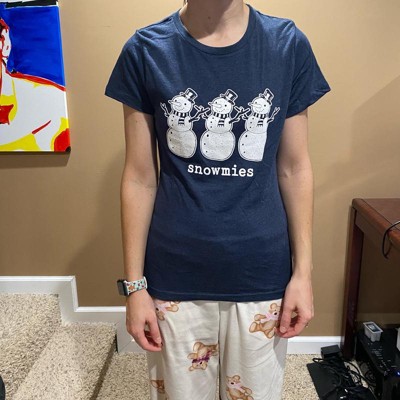 [This review was collected as part of a promotion.] This shirt is super soft and comfy and it fits true to size. I am 5’4” and 110 pounds. I usually wear size XS or Small and the Small fit me perfectly. The design is super cute. I love the “snowmies” saying. It’s perfect for the whole winter. The image is clear and well done. I definitely recommend these shirts.