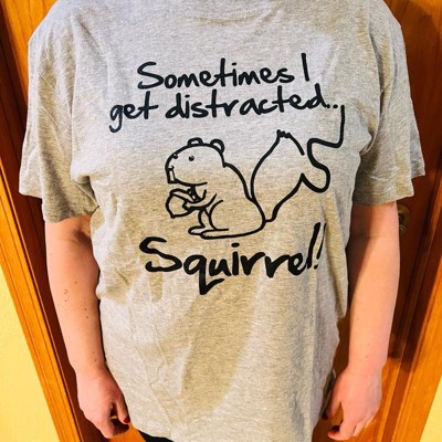 Sometimes I get distracted...hey look! A squirrel. If you loved our squirrel ADD shirt you will love this one. The perfect gift for that person who just can't sit still. Are you easily distracted? Animal Lovers Unite! Celebrate your furry friends with some funny doggie puns or cool cat jokes. At Crazy Dog T Shirts we are Proud of ourselves in making fun, animal themed products every pet parent will love! Unique and hilarious, Crazy Dog funny shirts for women and shirts with sayings make great gifts for family, friends and coworkers. Our women's novelty t-shirts are perfect for the cute and sarcastic mom, sister, aunt or grandma in your life. Crazy Dog shirts with funny sayings are made with a soft spun poly cotton blend. Soft and comfortable to wear, our funny womens t shirts will quickly become her new favorite graphic tee. Available in a wide range of colors, sizes and styles, our funny t shirts for women pair well with her favorite pair of jeans, shorts or sweatpants. Find the eye catching sarcastic tshirts for women your friend, cousin, coworker or girlfriend will love. Our women's graphic t-shirts and sarcastic t shirts are great for birthdays and holidays. These womens novelty t shirts are perfect for the one who appreciates funny sarcastic shirts and gag gifts. Crazy Dog funny graphic tees for women are made in the USA. Our funny aunt, grandma and mom shirts are printed with high grade ink and state-of-the-art equipment. These womens funny tshirts are designed to last and won't fade over time. Crazy Dog's fun tshirts for women are comfy, stretchy and crafted with super soft material. If you're looking for women's novelty clothing, we have a wide selection. Charming, cute, nerdy and corny, our funny sarcastic shirts are perfect for casual wear, camping and work. Wear our ladies graphic tees on a casual day off or a fun get together with friends