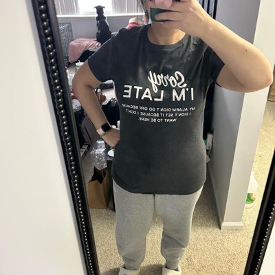 Womens Sorry I'm Late T shirt Funny Sarcastic Lazy Top Novelty Graphic Design - Crazy Dog Women's T Shirt With Sarcastic Sayings Black M