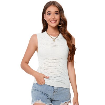 Womens Summer Basic Sleeveless Crew Neck Casual Tank Tops Bustier Crop Top Bustier Summer Ribbed Fitted Cropped Tank