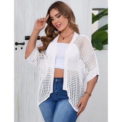 Womens Summer Lightweight Cardigan Long Sleeve Open Front Loose Beach Crochet Cover Up RN002 bleached white,2XL