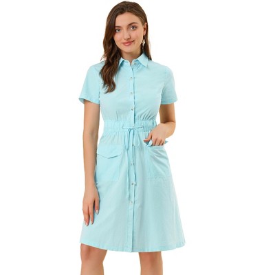 - Features: The dress features a classic crew neckline, short sleeves, and beautiful eyelet embroidery that adds a touch of elegance to its casual design.