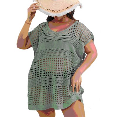 - Feature: Short sleeve, batwing, v neck, knitted, hollow out, swim beach cover up for women, crochet cover up dress, plus size swimsuit bikini cover up.