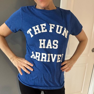 Womens The Fun Has Arrived T Shirt Funny Party Good Time Lovers Tee for Ladies - Crazy Dog Women's T Shirt With Sarcastic Sayings Royal S