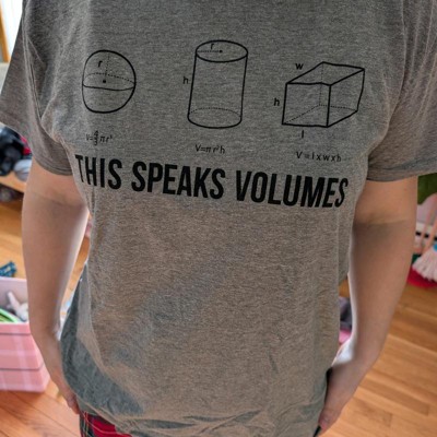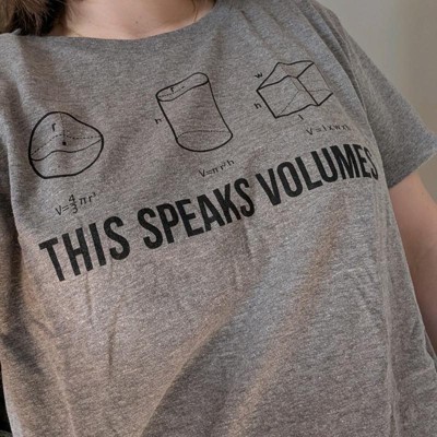 Clever math pun design: Features formulas for sphere, cylinder, and cube with “This Speaks Volumes” text; Great for female teachers, tutors, or nerdy women who enjoy clever math humor and classroom conversation starters
