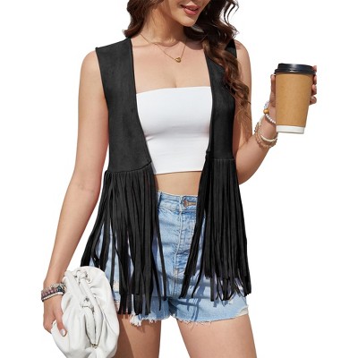 Womens Vest Fringe Vest Hippie Style Sleeveless Open Front Cardigan Vest Brown L