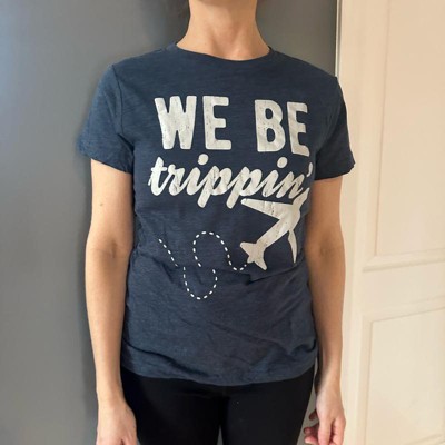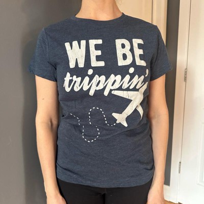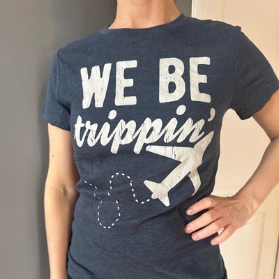 Womens We Be Trippin T Shirt Cool Travel Vacation Adventure Airplane Graphic Novelty Tee - Crazy Dog Women's T Shirt For Summer Vacation Navy S