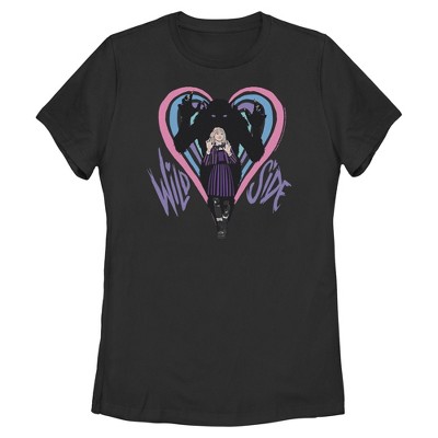 • Walk on the dark side of fashion with this stylish new women's t-shirt that is perfect for every occasion! Featuring the lovable Enid Sinclair showcasing her striking signature pose with her powerful werewolf form looming just behind, a vibrant heart, and the phrase: "Wild Side" printed across the front.
