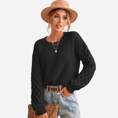 Womens Winter Fall Solid Balloon Long Sleeve Turtleneck High Neck Sweaters Pullover Outerwear Color Block Casual Shirt Top S: Bust 44.88---Length 24.41. M: Bust 46.46---Length 24.80. L: Bust 48.03---Length 25.20. XL: Bust 49.61---Length 25.59.