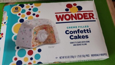 - You'll get one box of Wonder Crème Filled Confetti Cakes with six individually wrapped snack cakes per box