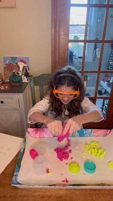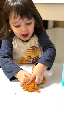 [This review was collected as part of a promotion.] The concept of it is great. When we opened it, there were two kinds the sand and the dough. The dough would not pull apart and was just crumbly. When you would try to smash it back together or do any type of play with it wouldn’t even stick together. My kids were able to take turns with the sand. Luckily it was very easily to clean up and fits right back into its container for easy storage. It’s nice because it kept the kids busy for a good 20 to 30 minutes.
