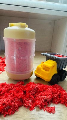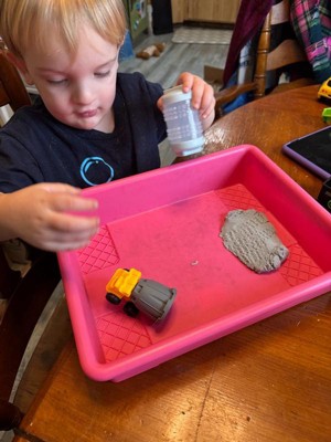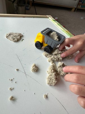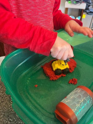 [This review was collected as part of a promotion.] My kids absolutely loved this toy. It is a fantastic sensory toy. The sand is so fun to squeeze and play with. They loved loading up the dump truck and driving it over mounds of sand. It has minimal sand fallout so it’s virtually mess free. It comes with a great container to store it in as well.