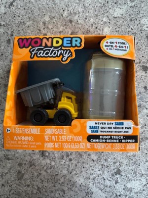 [This review was collected as part of a promotion.] Wonder Factory Never Dry Sand Construction Truck is very durable. You can interact with other construction trucks and sand. Your child will have hours of fun.