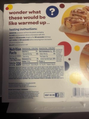 [This review was collected as part of a promotion.] The wonder cinnamon rolls had good flavor. They paper tray they are on sticks to them and you have to peel it off. The pastry itself was very doughy and would be better if it were light and fluffy.