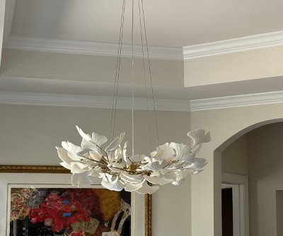 Introducing the exquisite Ginkgo Leaf Dining Room Chandelier, a perfect blend of iron and ceramic, meticulously adorned with a sophisticated electroplated finish. A testament to opulence and sophistication, this chandelier elevates your dining environment to unparalleled heights. With its thoughtful design, it bathes your space in a warm 3000K glow, perfectly creating an ambience conducive to an exceptional dining experience.