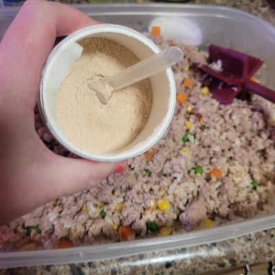 Easy to mix into food. Savory smell - my German Shepard seems to enjoy it!