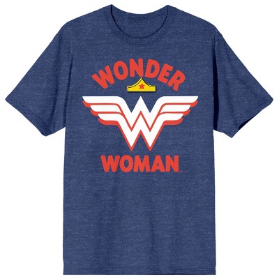 GRAPHIC TEE: An image of Wonder Woman's face appears in front of a red circle on this graphic tee while yellow letters below the superhero spell out her name. Fans of the Amazon warrior will love this t-shirt.