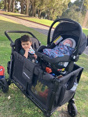 Our twin 4 year olds and 4 month old fit in the 4w version and the car seat adapter swivel was perfect to keep our baby out of direct sun. I waited for this to be compatible w Graco and it works so well. So happy w my purchase! Worth it.