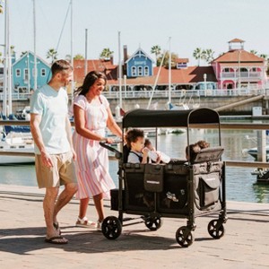 Designed for the family with multiples on the go, this unique stroller wagon handles with ease and accommodates up to 4 passengers with high weight limits and fits through standard doorways. The seats can be removed to make space for naptime or playtime with zipper door for maximum versatility as kids grow. It is much more spacious and comfortable than a traditional stroller. It is made with a steel frame for premium durability and equip with superior safety.