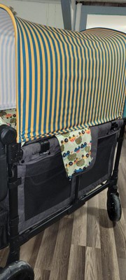 A: Hi Kat! Our stroller wagon is equipped with all-terrain wheels, and it will work in sand. Just note that, like any product with wheels, it won’t glide as easily on soft sand. It’ll still get the job done, but with a bit more effort.