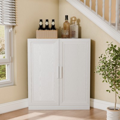 Wooakway Natural Wood/Black/Light Walnut/White Decorative Storage Cabinet Corner Kitchen Dining Cabinet Freestanding Cupboard Adjustable Shelves Home
