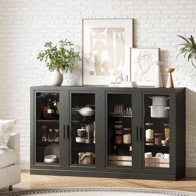 Wooakway 36"H Black Glass Door Storage Cabinet 2-Door Adjustable Shelf Sideboard for Kitchen or Dining Room