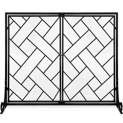 Wooakway 49"W*30"H Gold 3 Panel See-Through Metal Fireplace Screen Foldable Fire Spark Guard Cover with Metal Decorative Mesh for Living Room