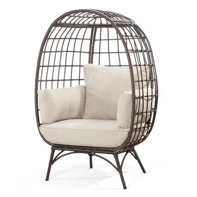 Wooakway 60"H Modern Patio Egg Chair Lounge with Rattan Grid Backrest and Water Resistant Cushions for Comfy Indoor Outdoor Porch Backyard Use