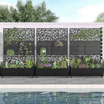 Introducing the Metal Planter Box with Trellis Raised Garden Bed with Arbor Privacy Screen with Wheels - the ultimate solution for creating a beautiful and functional outdoor or indoor space. This versatile garden bed combines the elegance of a trellis with the practicality of a raised bed. It also can be a perfect choice as a privacy screen when creating more beauty for your home.
