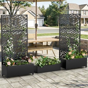 This 3-piece outdoor set combines functional planters with decorative privacy panels to elevate your patio, deck, or yard. Each planter features a spacious design perfect for growing flowers, vines, or greenery, while the accompanying panels add both privacy and a vertical display space for climbing plants. Crafted from weather-resistant, galvanized material (built to resist corrosion), the set includes detachable 360-degree wheels (2 with brakes) for easy movement and secure positioning. Versatile and durable, it lets you create a cozy, personalized outdoor area - ideal for relaxing, entertaining, or adding greenery to your exterior space.