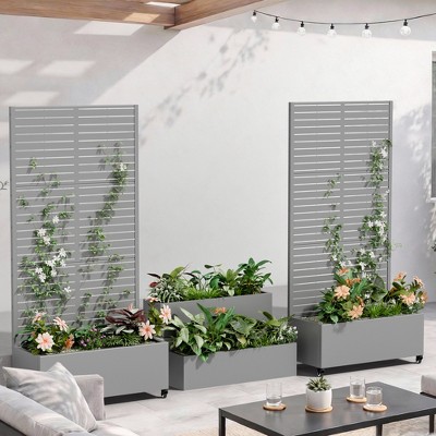 Wooakway Outdoor 3-Piece Planter Privacy Panel Set Weather-Resistant Galvanized Patio with Rolling Wheels for Decks Yards Climbing Plants