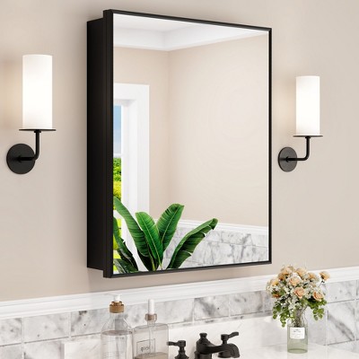 Wooakway 36"H × 24"W Arch Metal Medicine Cabinet with Adjustable Shelves Recessed Wall Cabinet Wall Mounted Bathroom Storage Cabinet with Mirror Black