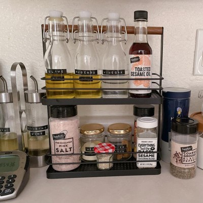 - 2-tier metal spice rack brings organization to your kitchen