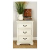A practical yet stylish upgrade that instantly elevate the look of your room. Maintain a clutter free zone and stay organize with this chic cabinet. Rectangular white table are best displayed near upholstered sofa or wrought iron beds with potted plants and books. This item ships in 1 carton. Cream cabinet features 3 drawers with 30 lbs weight limit. Suitable for indoor use only. Maximum weight limit is 100 lbs. This is a single cabinet. Traditional style.