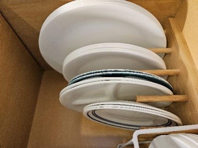 A: You can store skillets, pan lids, cutting boards, chopping boards, and baking trays.