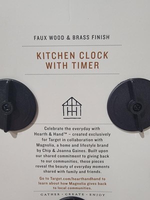A: Hi Mick, thank you for your question. This Wood and Brass Kitchen Clock and Timer requires one AA battery (battery not included in purchase). Thank you for your interest in the Wood and Brass Kitchen Clock and Timer - Hearth & Hand with Magnolia!
