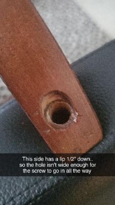 Nice heavy, solid wood, but the holes for assembly did not allow the screws to go in all the way. Very disappointed and frustrated. Not looking forward to the return process so I might try to fix the hole.
