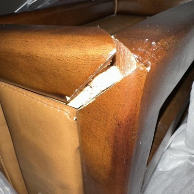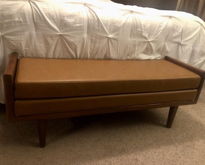 HomePop Wood Bench with Upholstered Seat Faux Leather Caramel: Rectangle Ottoman, Entryway Seating, Polyester & Viscose