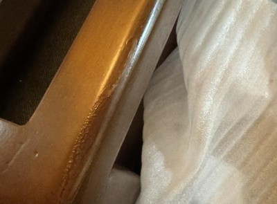 Shipping was superb, faster than originally estimated. Nice design but there are a couple knicks and scratches across the wooden frame.