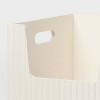 Upgrade your living space storage with the Open Front Small Wood Bin from Brightroom™. Made with wood in a white hue, this rectangular storage bin features a spacious design with an open-front cutout to make it easy to stash away toys, blankets and more. Plus, the side cut-out handles on either side make it portable and easy to carry around the home. Suitable to place on any shelf or closet, this white wooden bin mixes well with various decor styles and color palettes.