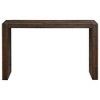 - Modern solid wood console table in a rich wood finish with wire-brushed distressing