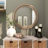 Bring a finishing touch to your home with an inviting appeal with this elegantly designed wall mirror. Create a balanced space in the most creative way with this expertly crafted wall decor for captivating focal point. Our reflective round wall mirror is ideal to hang on top of a wooden console table in the entryway to give a welcoming vibe as well as to make your room look bigger. This item ships in 1 carton. Can be hung vertically using the D-rings on the back; nails and screws not included. Suitable for indoor use only. This item ships fully assembled in one piece. This is a single brown colored entryway mirror. Bohemian style.