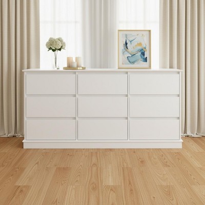 【Heavy-Duty & Kid-Safe Construction】Crafted with premium MDF and reinforced metal drawer rails (150lb capacity), this dresser withstands daily use securely. Features anti-tip hardware for childproof safety, meeting ASTM international standards. Water-resistant surface resists stains and scratches.